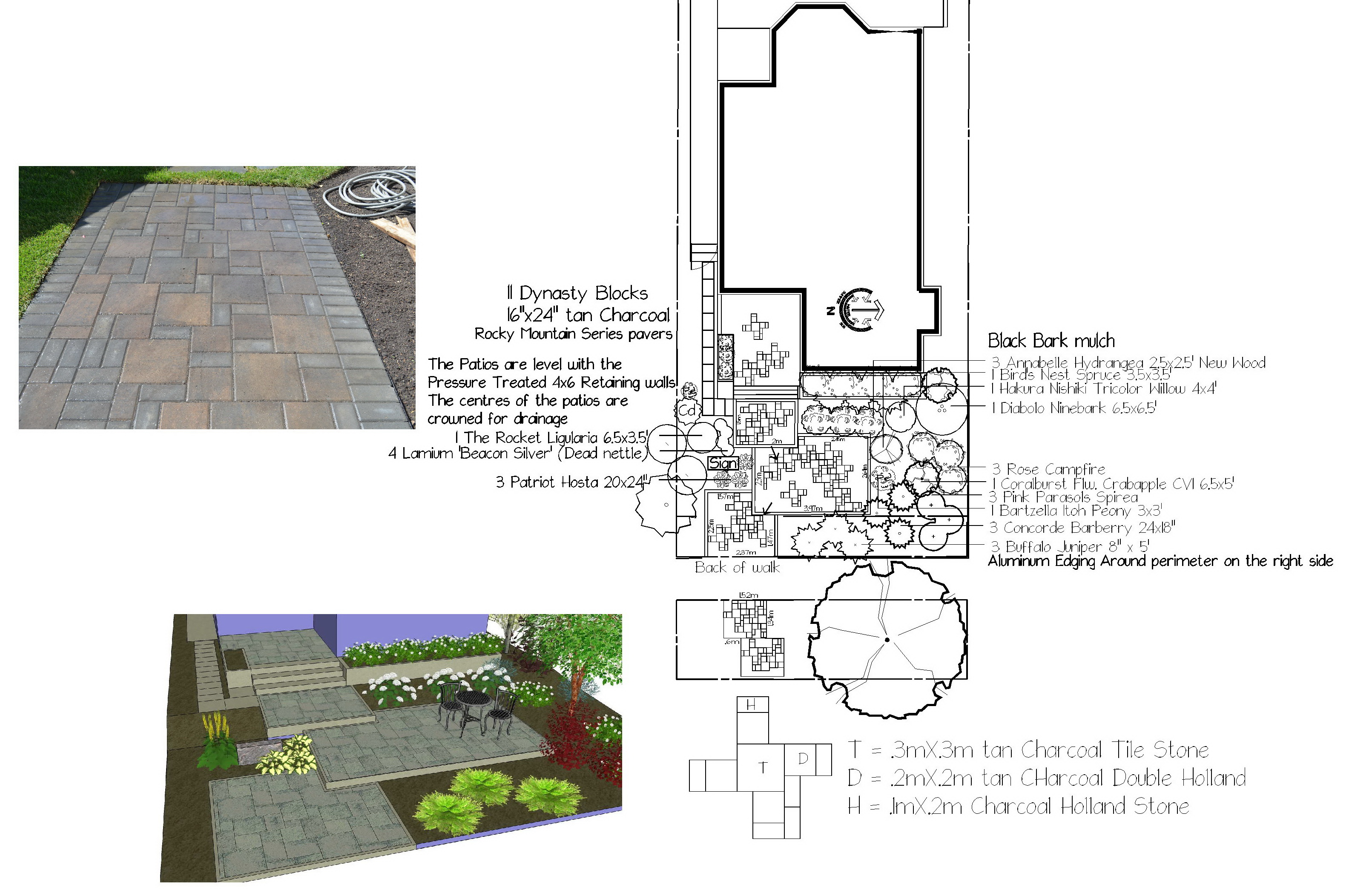 - Detailed planting plan, hardscape specs, materials and lighting list