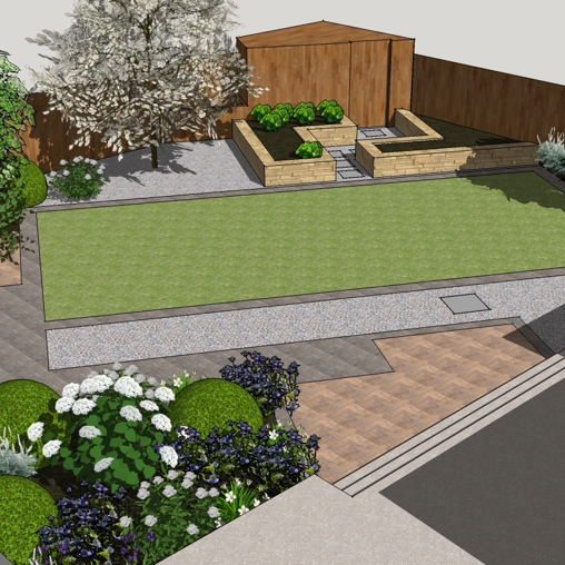 “I wanted to completely redo my landscaping for my skinny home as it was done poorly by other landscapers in the past. Andreas the designer came out to take a look and created a design for me that completely suited my needs, lifestyle, the size of the space”- Hillary Marsden