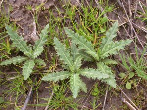 Canada thistle and Sow thistle – are just evil and have deep root systems. Often the mother plant may live in someone else’s yard. Culturally, it is very difficult to remove by hand. The best method that I found is to fork down around 16 inches. You are looking for a horizontal root that gives rise to all of the vertical roots. If it is a new plant you can hoe it consistently and slowly starve it out.