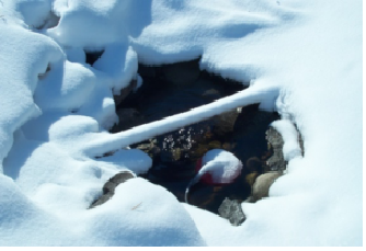 at least two feet (60cm). You will stop feeding your fish in mid-October as the fish are not able to digest properly in cold water. You will need another pump that isn’t too strong but enough to create a small burble in the water. This will keep the water oxygenated through the winter. And then you will need a pond heater. They are usually sold at greenhouses that sell pond supplies. I had fairly hardy goldfish and kept my fish outside for many years, the larger ones always made it but some of the smaller ones were hit and miss. I kept my heater on a timer so that ice formed on the surface of the pond except for around the burbler, and then used a rubber pond liner for extra insulation whenever it got down into the depths of the minus twenties and thirties. Because you do have moving water, you will have evaporation and therefore you will need to top up the pond periodically. My pond was small so I had to top up every couple of weeks.