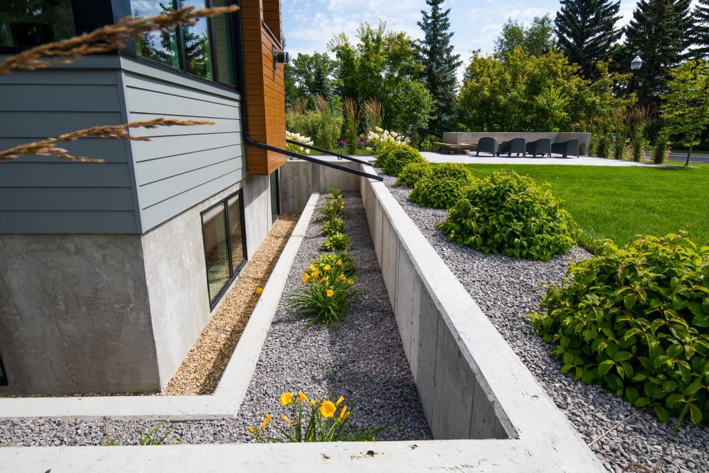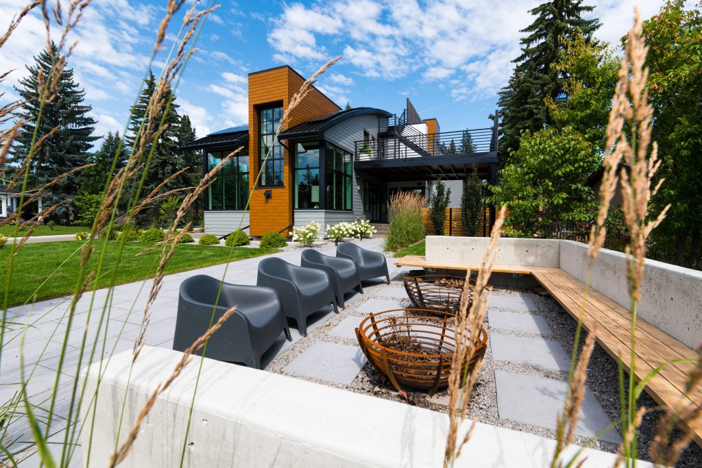 Furthermore, because of the location of the yard, it was impossible not to impact other properties. Our team recognized that removing the existing landscape would have an impact on the raised garden beds in a neighbouring yard. This home was also an infill property, which came with grading issues that needed to be corrected for the landscape to meet regulations. To create the entertainment space the family was looking for, we needed to address the grading issues to build in concrete seating in the right position.