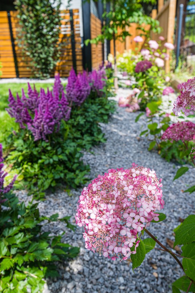 In this case, the family was a pleasure to work with—but the lot itself posed some challenges. In the original design, the space for the garden was awkwardly shaped; it stretched along the front of the home and turned a corner into a large, slightly curved space. Due to the shape of the surrounding street, the yard was very exposed with ample foot and vehicle traffic on either side, posing a challenge for creating privacy.