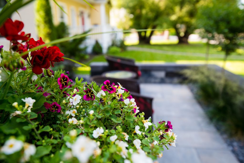 To take your front yard design to the next level, nothing gives you more “bang for your buck” like professionally-installed hardscapes! A flagstone sidewalk, interlocking paver driveway, or natural stone retaining wall can totally transform the look of your home.