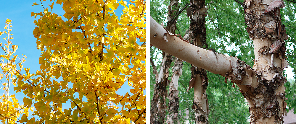 Paper birch trees not only develop lovely yellow foliage in the fall but also provide exquisite winter interest. The stark white, peeling bark is a classic symbol of winter, making for a seamless transition from one season to the next.