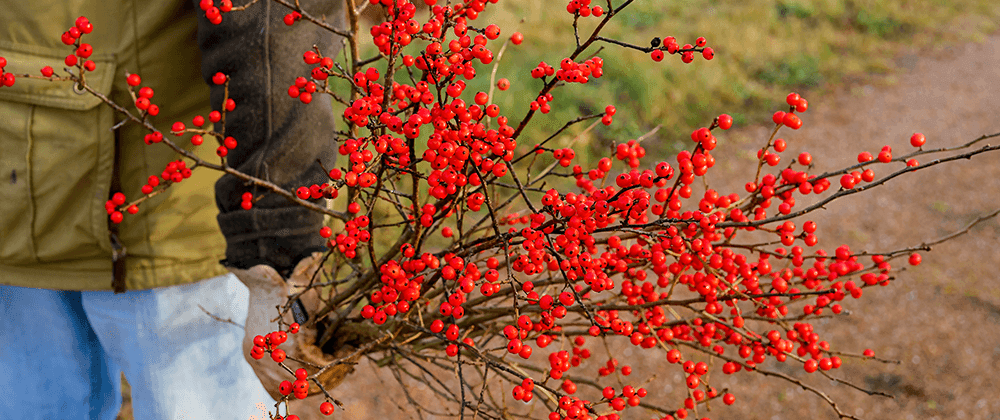 Luckily, we can purchase evergreen holly sprigs for our festive indoor decorations.
