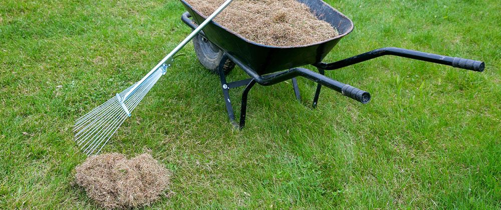 Once the lawn is dry enough to be maintained, you can start with a good dethatching. The thatch, or the layer of dead grass between the soil and the new growth, is important for protecting the roots, but it should be maintained at about a centimetre in thickness. Too much thatch prevents the exchange of oxygen and water between the soil and the air above it, leading to disease or infestation. Use a hard rake to give it a good comb-through, but don’t rake so hard that you’re pulling up soil. Consider it your workout for the week!
