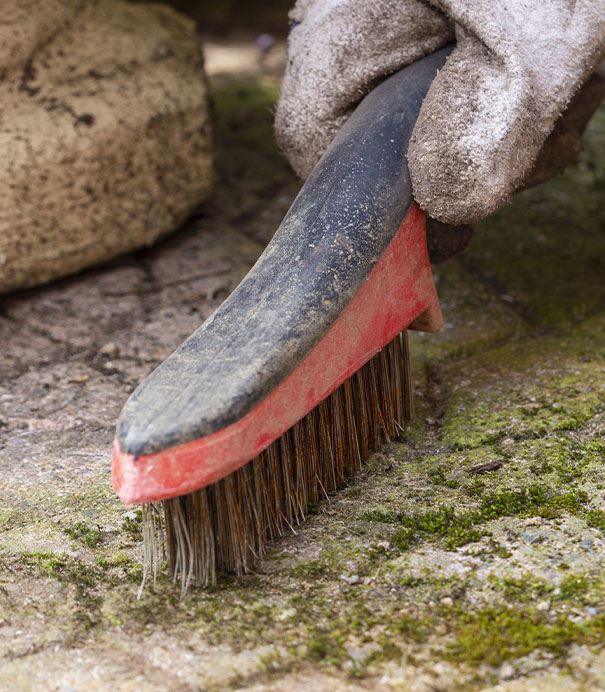 Scrub the inside of the fountain basin with a gentle scrub brush and soapy water to remove any built-up, grime or gunk. Rinse it clean to remove any soap residue. Then, rinse the basin with a vinegar and water solution, and let it sit for ten minutes; this helps to remove calcium and lime buildup. Scrub the basin to really work in the vinegar solution, then rinse, and dry.