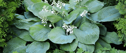 - Blue Angel Hosta: here’s a beautiful blue plant that grows in the shade and shoots up tall stems of bell-shaped flowers. It’s a staple in the shade garden and plays nicely with all three colour motifs.