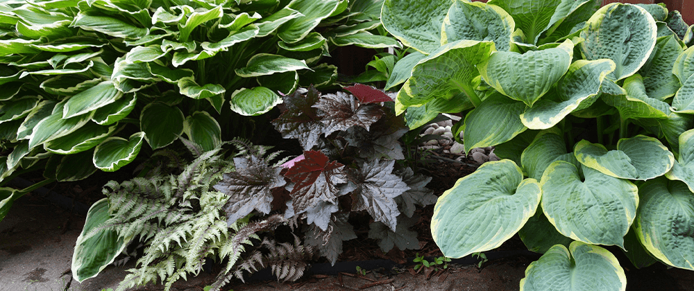 - Coral Bell: their colourful leaves are like pastel portraits growing in your garden. Burgundy coral bells work exceptionally well with the painted ferns. With the two of them, your shade will never be dark.